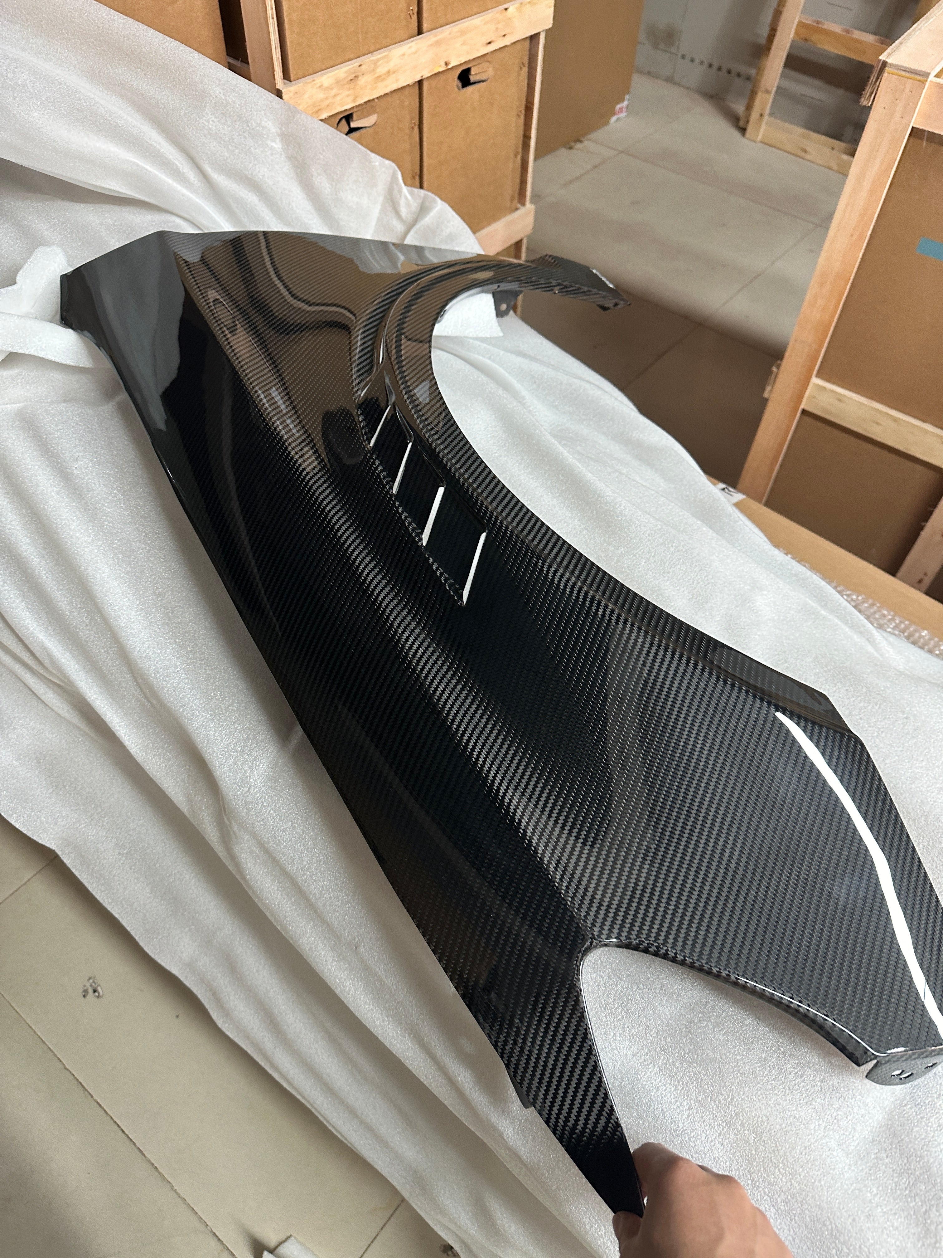 For those opting for a carbon fibre bonnet, it’s essential to note that the underside will typically be made of FRP material. This may require painting, while the top is carbon. (Unless you ordered a double-sided carbon bonnet)