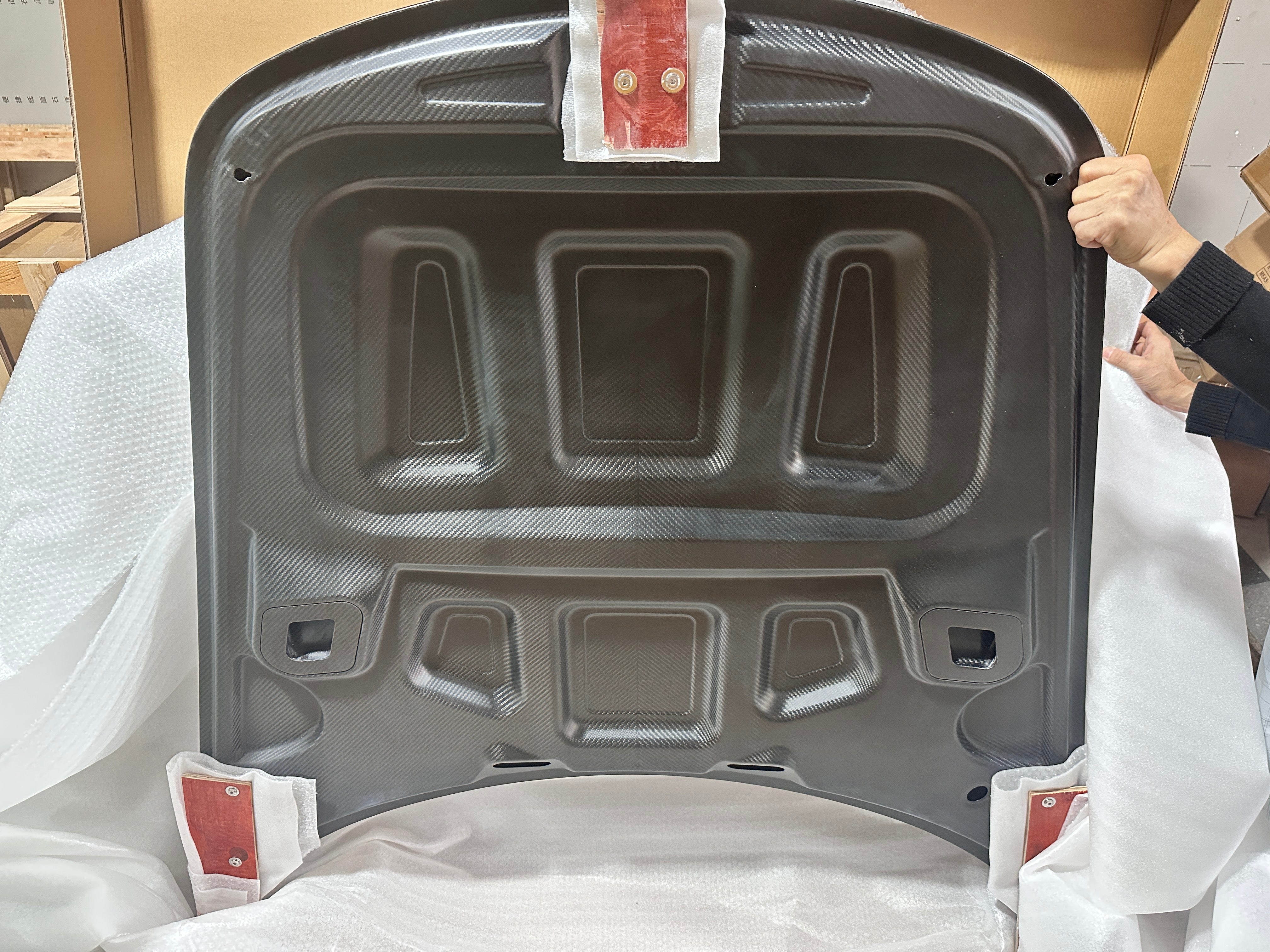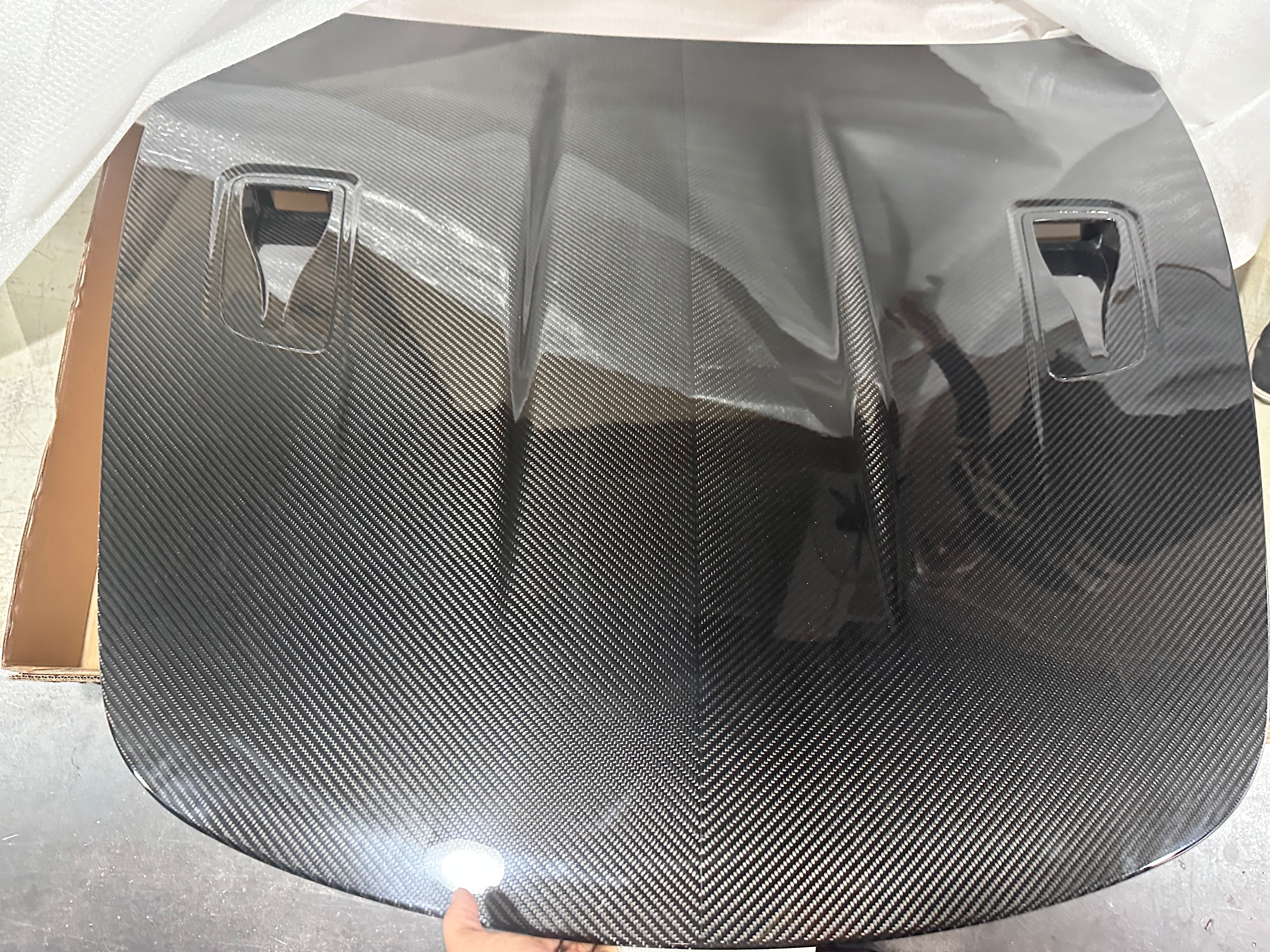 For those opting for a carbon fibre bonnet, it’s essential to note that the underside will typically be made of FRP material. This may require painting, while the top is carbon. (Unless you ordered a double-sided carbon bonnet)