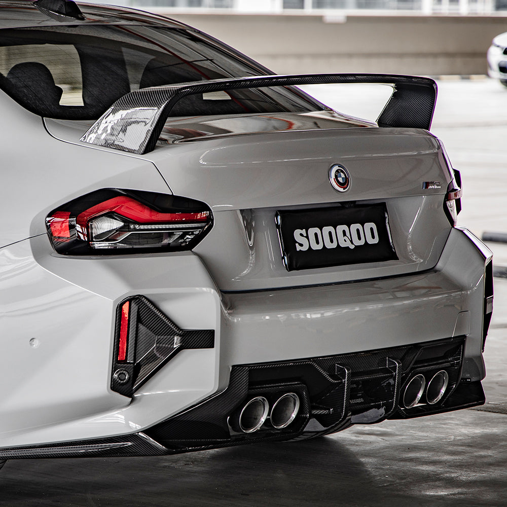 SOOQOO design BMW M2 G87 dry carbon fiber diffuser. Unique styling body kits with perfect fitment and the best UV protection clear coat that can be used for over 3 years without any reaction. 1-year free warranty.