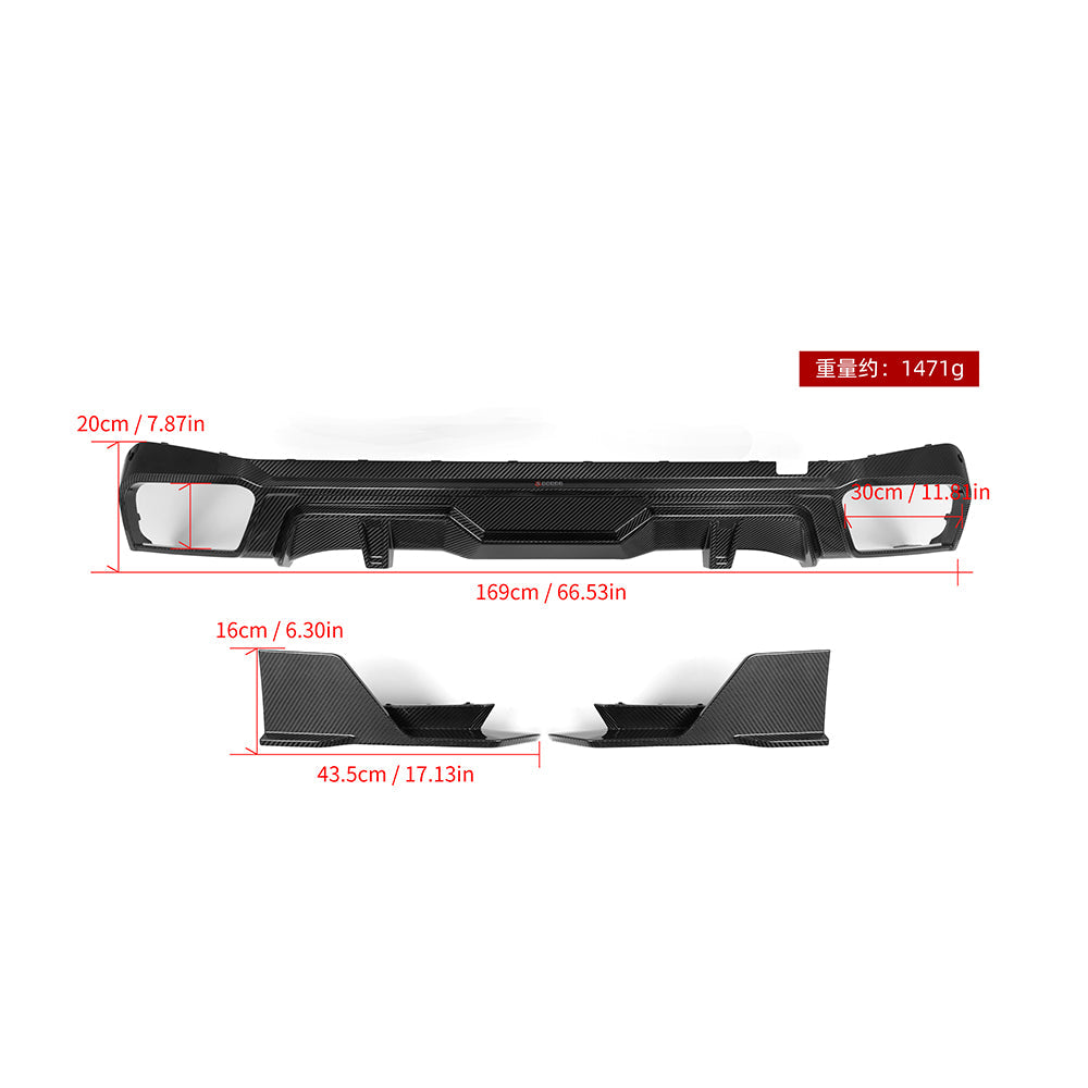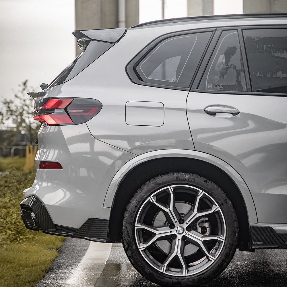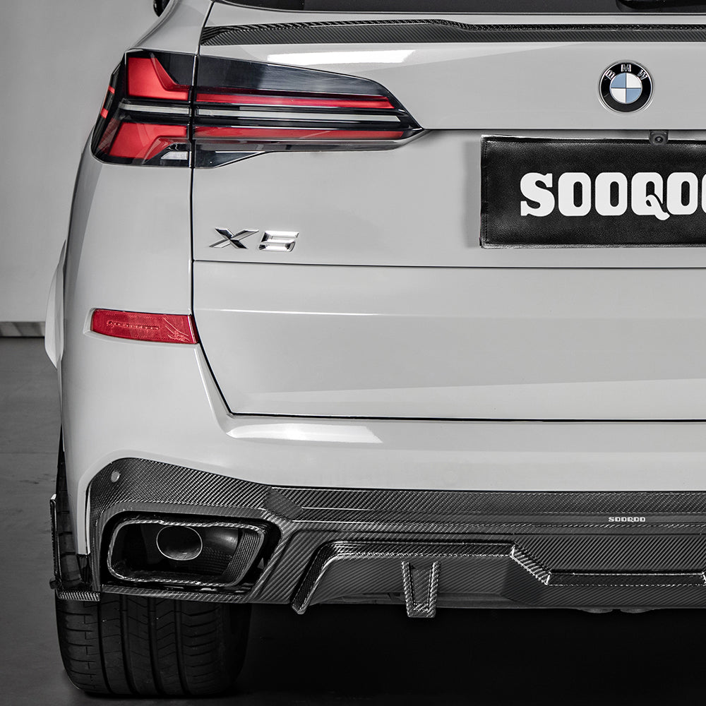 SOOQOO BMW X5 G05 Carbon Fiber Diffuser. Unique styling with perfect fitment and the best UV protection clear coat that can be used for over 3 years without any reaction. 1-year free warranty.