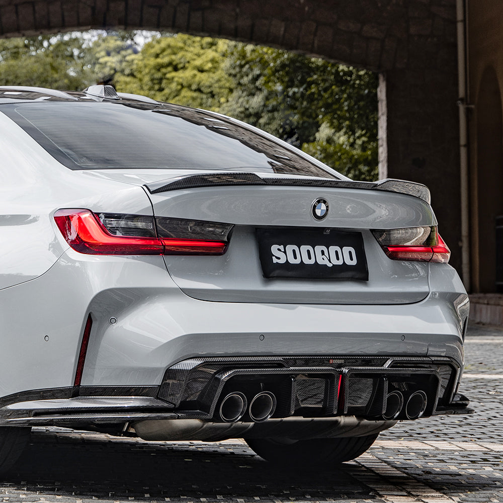 SOOQOO M3 G80 G81 Carbon Fiber Diffuser With Brake Light + Rear Splitter